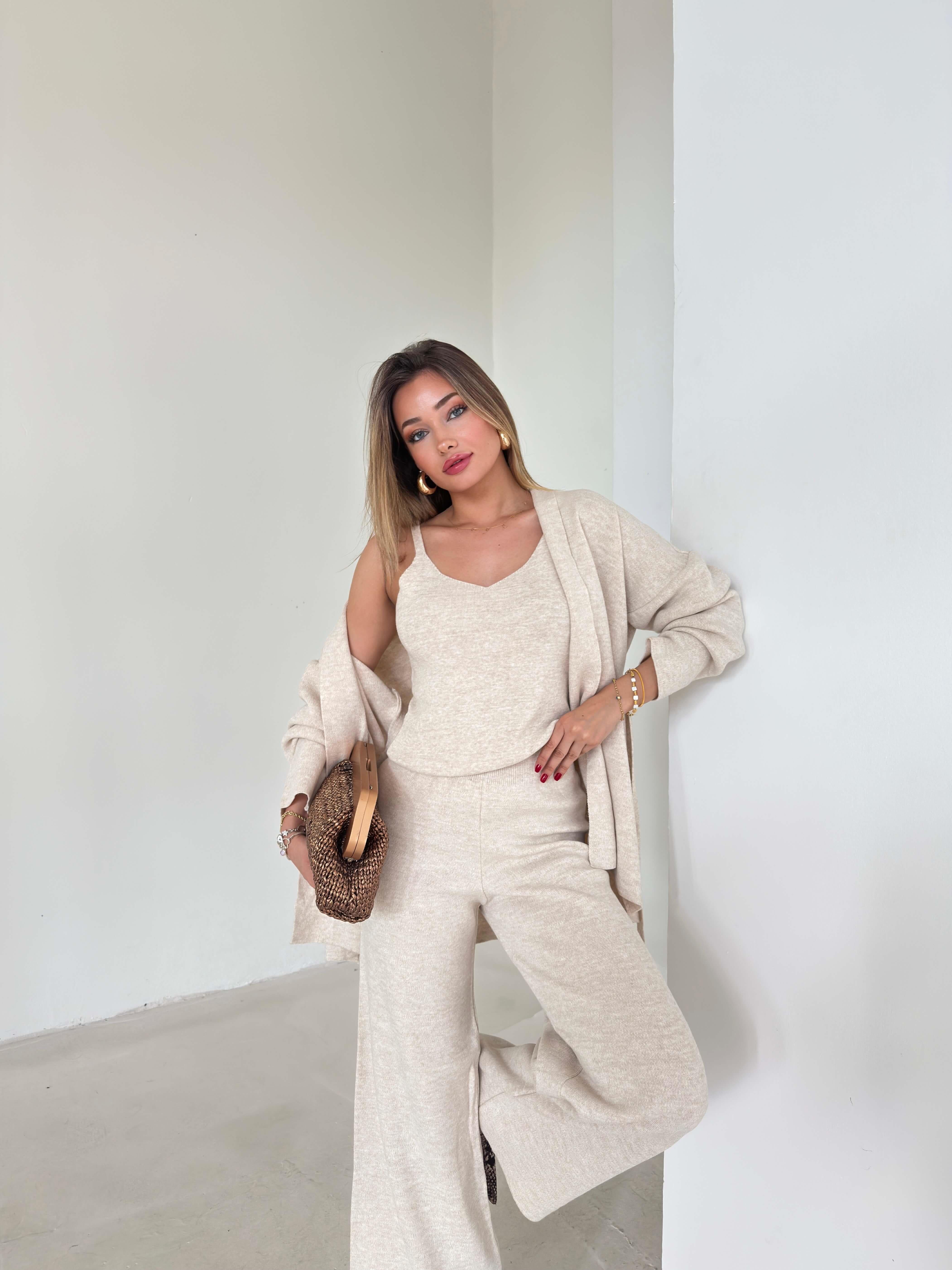 Hırkası Kuşaklı V Yaka Askılı Alint Üçlü Kadın Siyah Triko Takım 26K095 Hırkası Kuşaklı V Yaka Askılı Alint Üçlü Kadın Kahve Triko Takım 26K095 Hırkası Kuşaklı V Yaka Askılı Alint Üçlü Kadın Füme Triko Takım 26K095