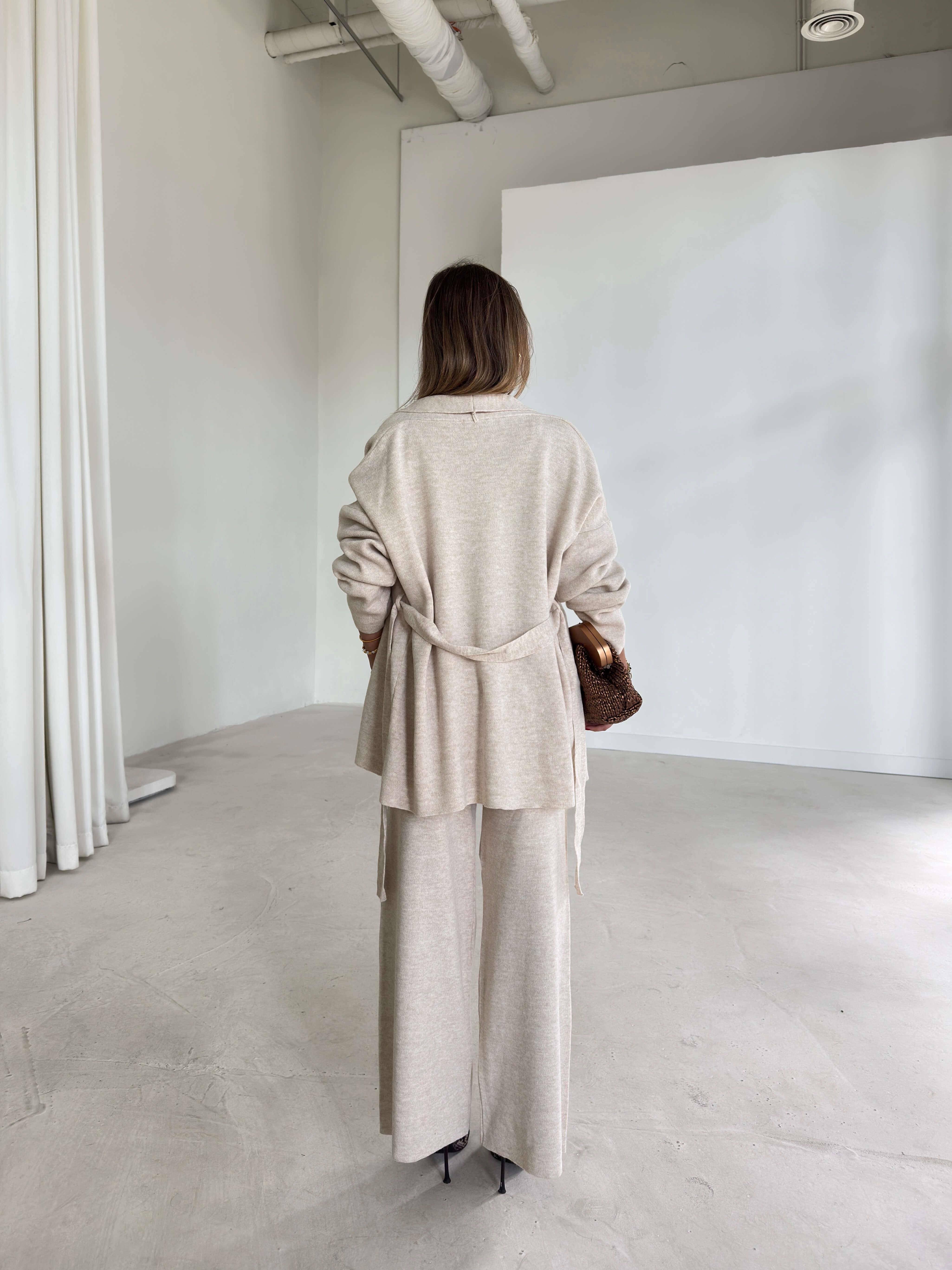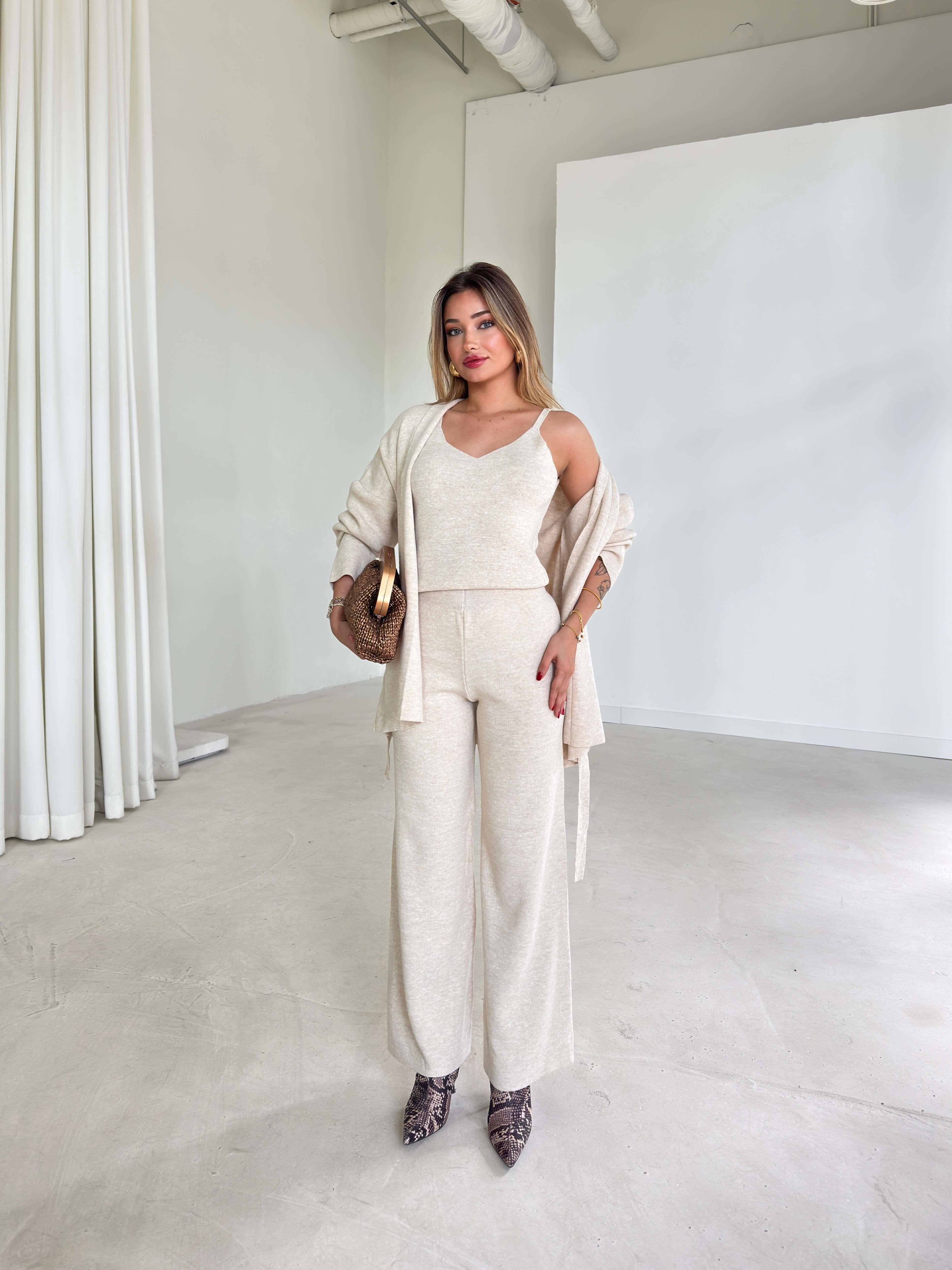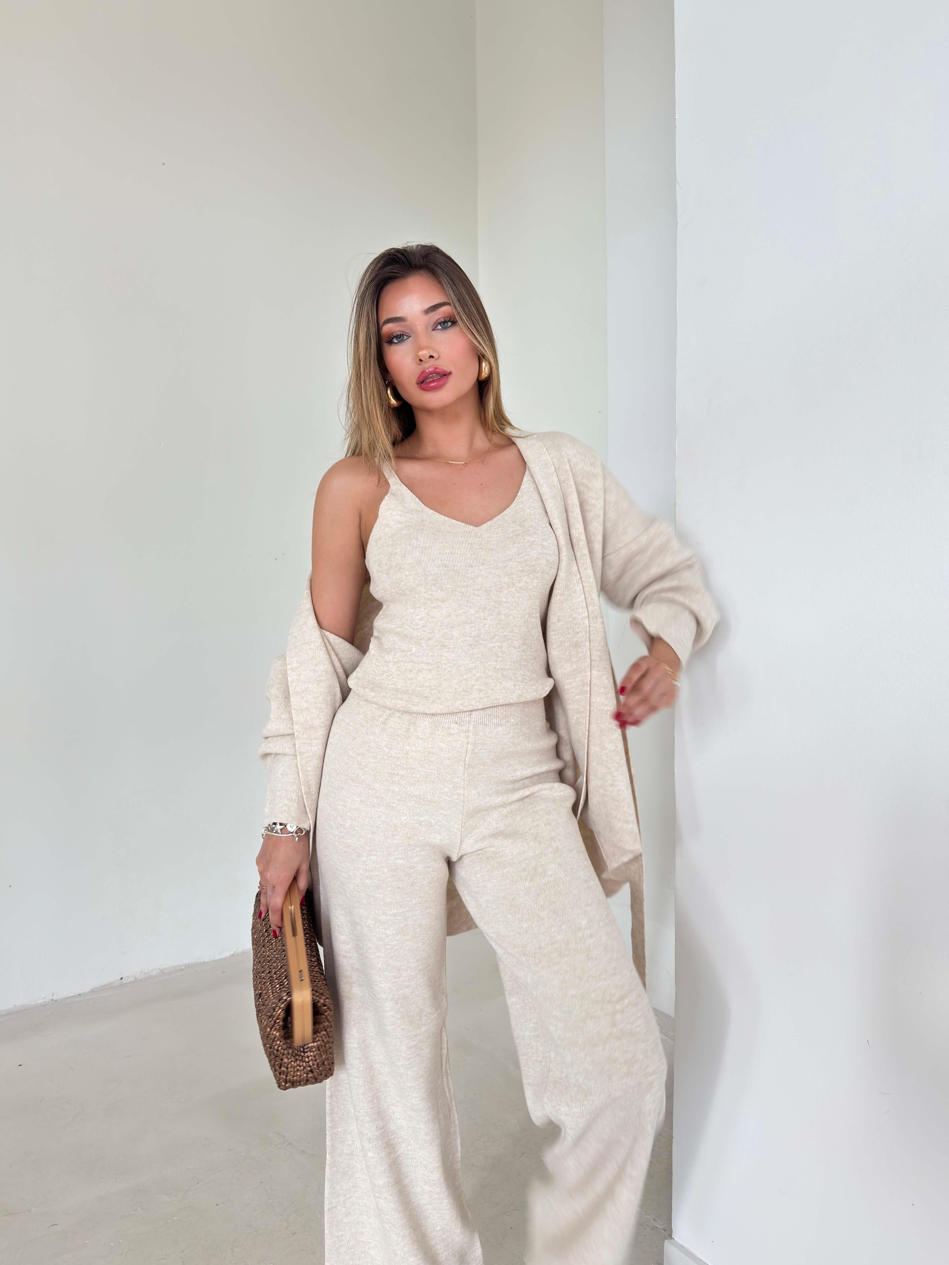 Hırkası Kuşaklı V Yaka Askılı Alint Üçlü Kadın Taş Triko Takım 26K095 (26K095)