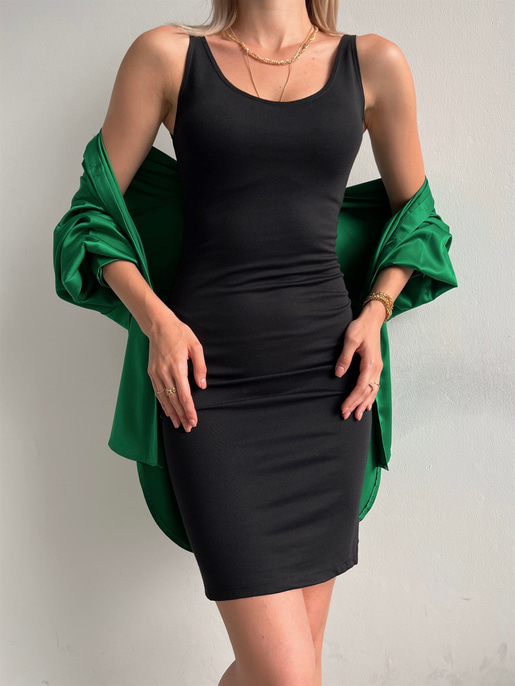 *Kalın askılı ve arkası yırtmaç detaylı yazlık elbise.