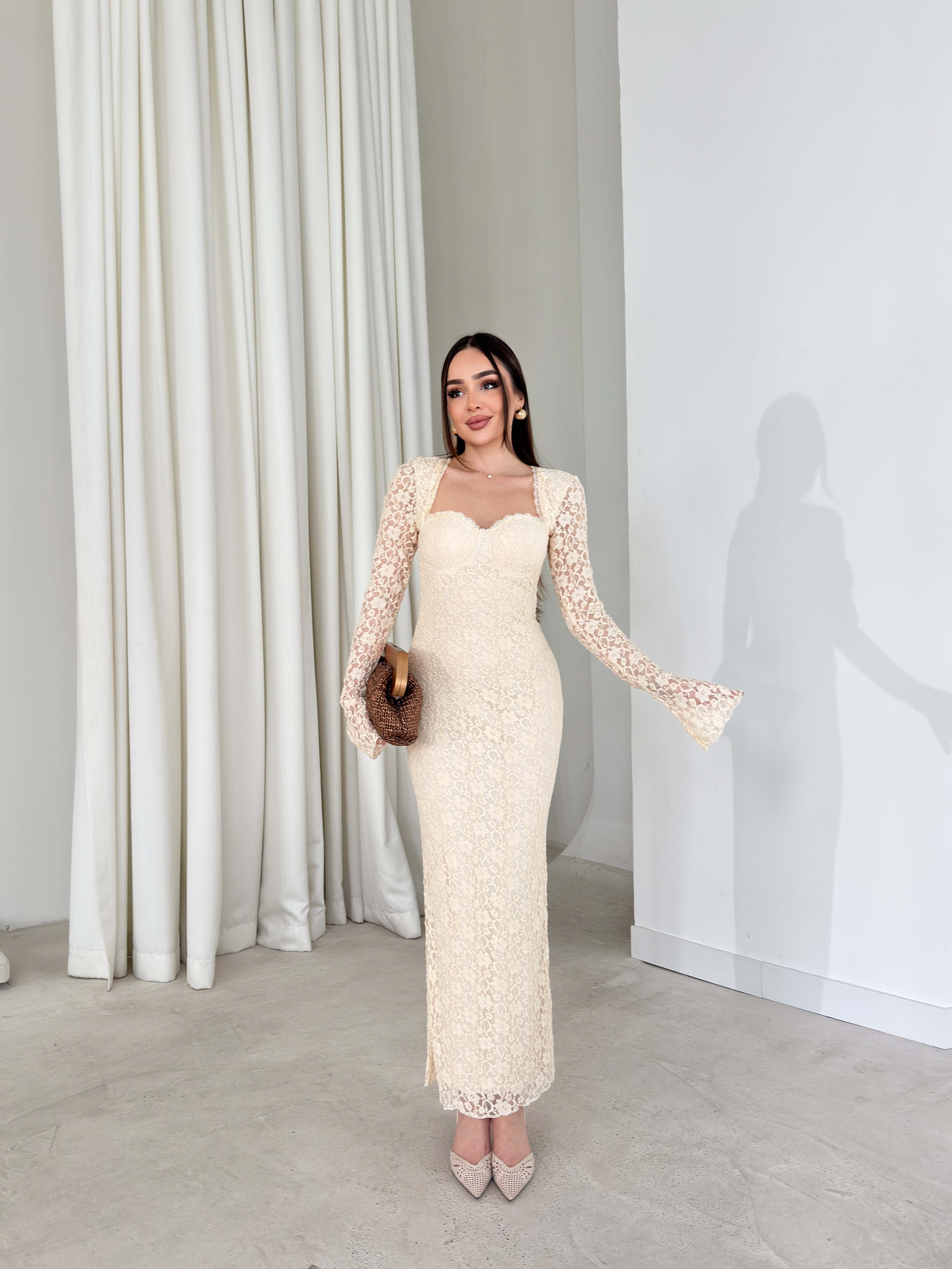 Kalp Yaka Maxi Arlene Ekru Dantelli Kadın Elbise 26Y126 (26Y126)