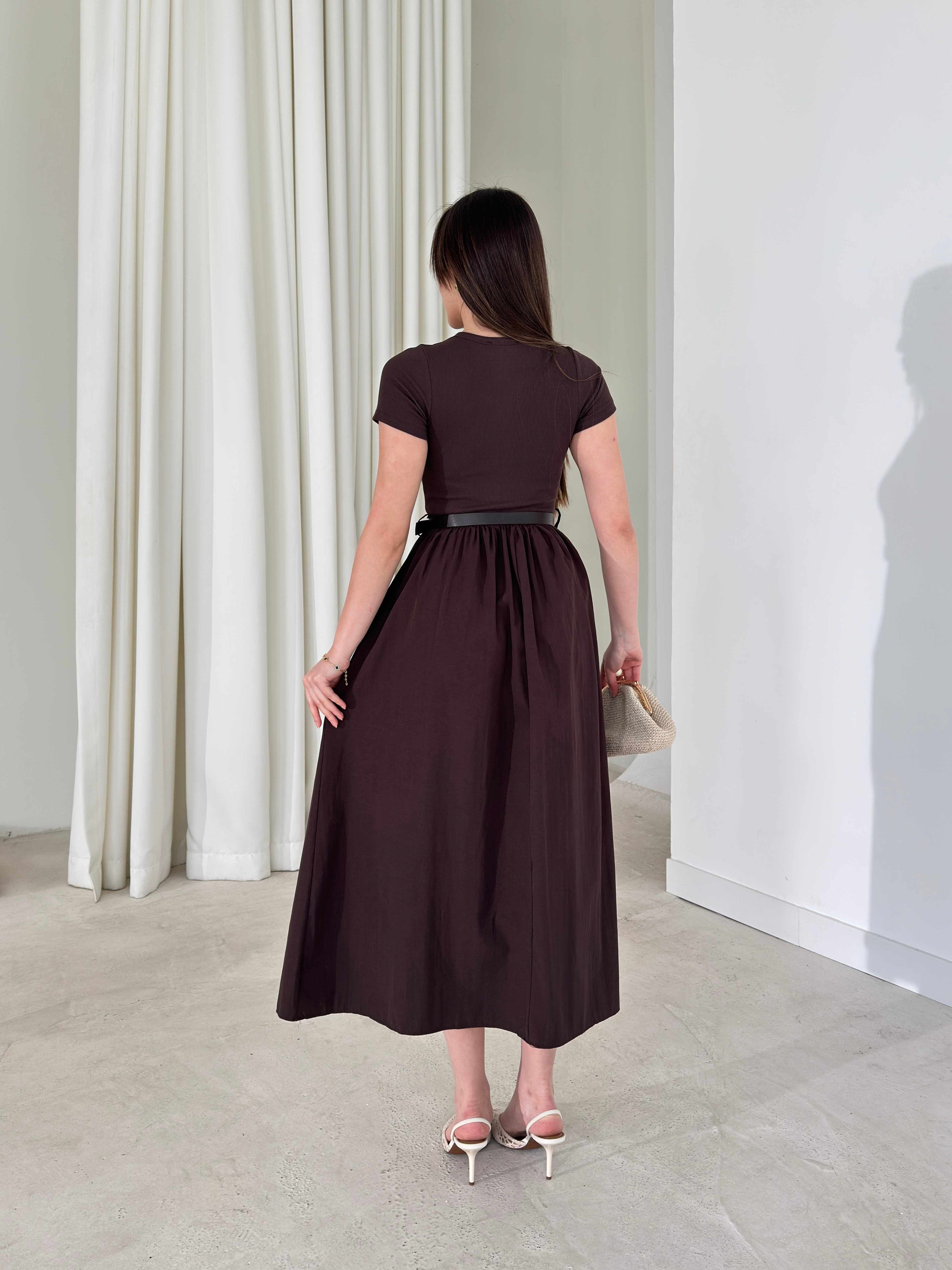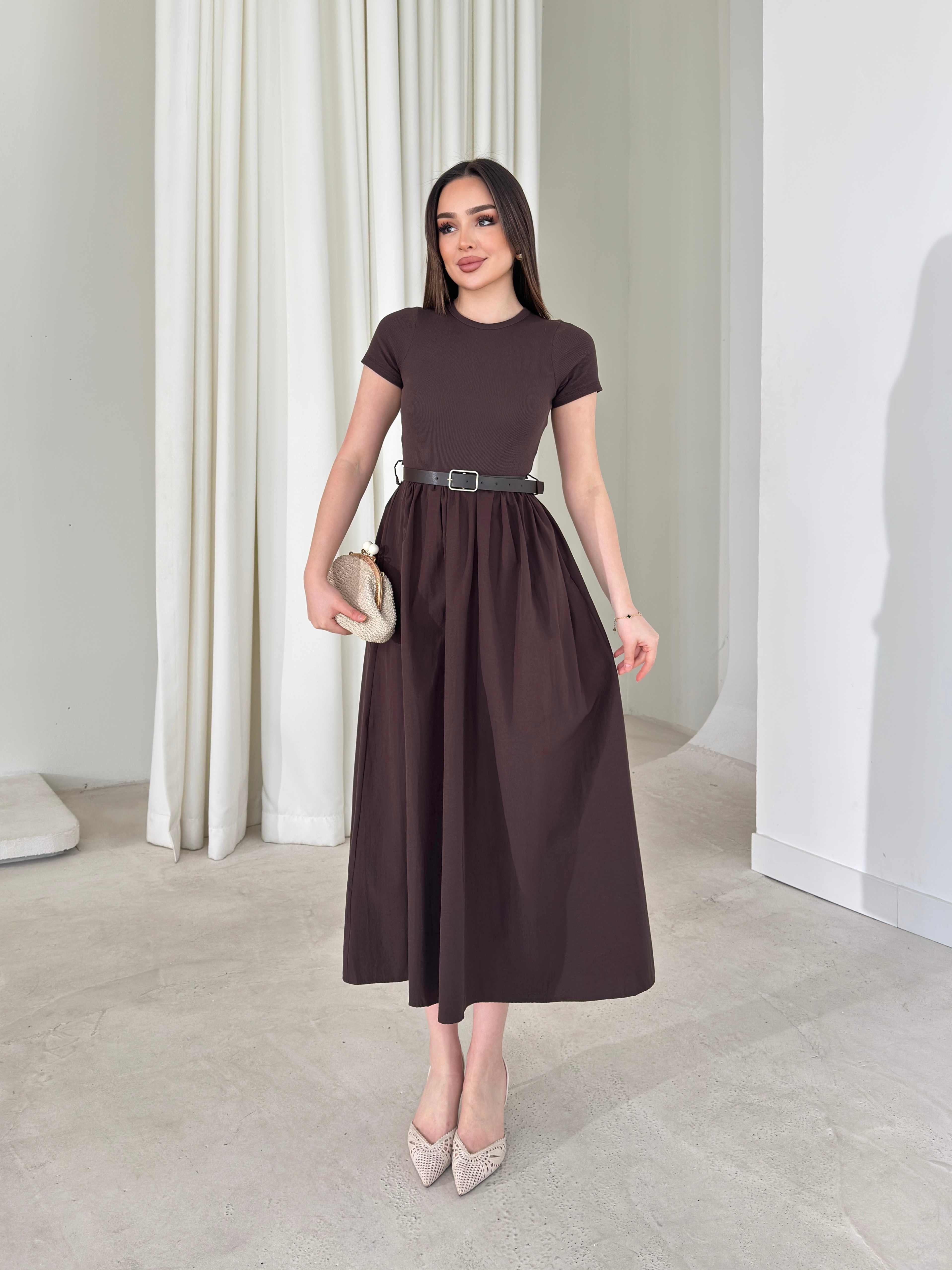 Kemerli Kısa Kollu Belden Oturtmalı Kahverengi Avery Kadın Elbise 26Y162 (26Y162)