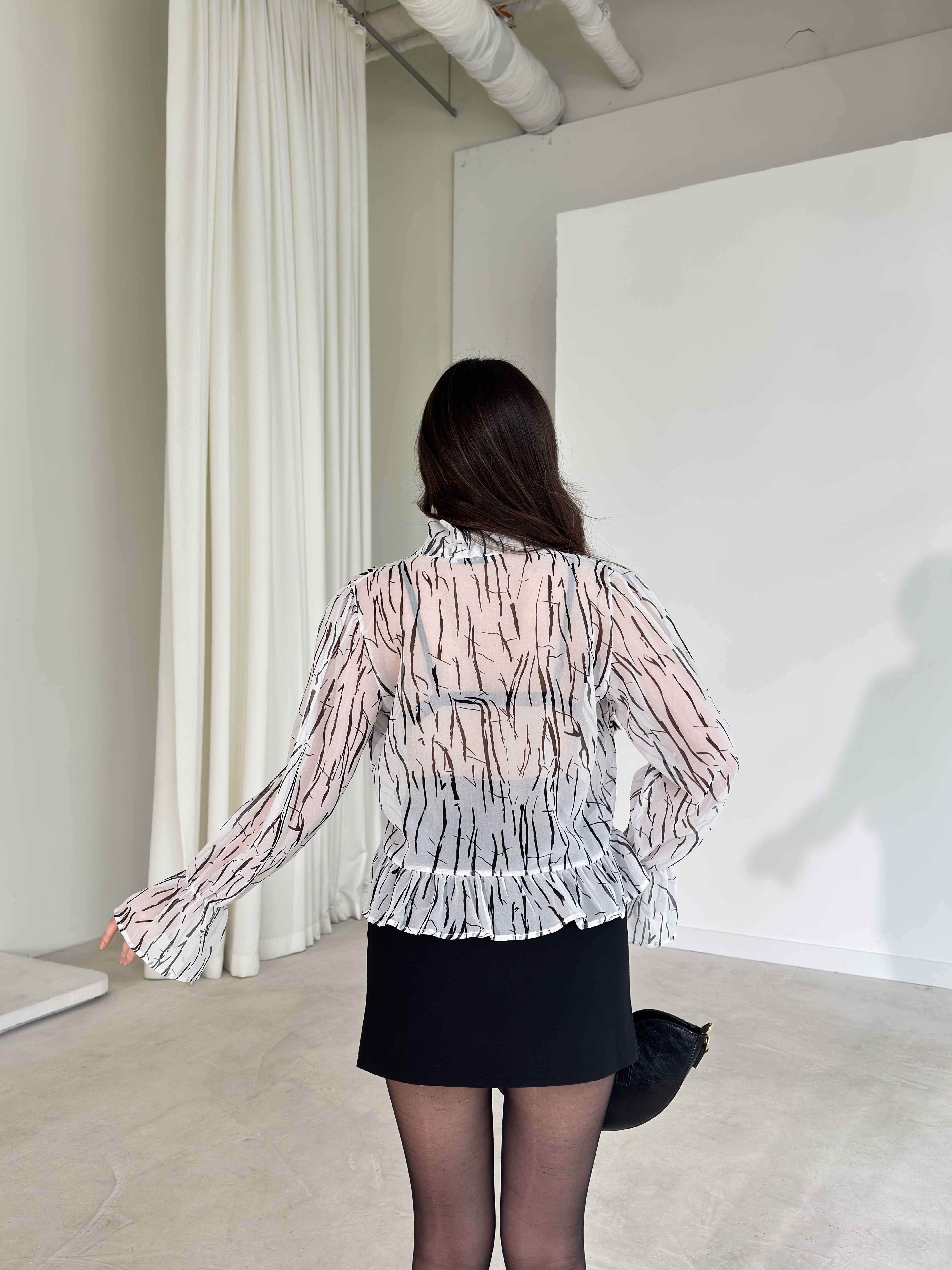 Kendinden Fularlı Transparan Siyah Adeline Kadın Bluz 26Y177 Kendinden Fularlı Transparan Kahverengi Adeline Kadın Bluz 26Y177