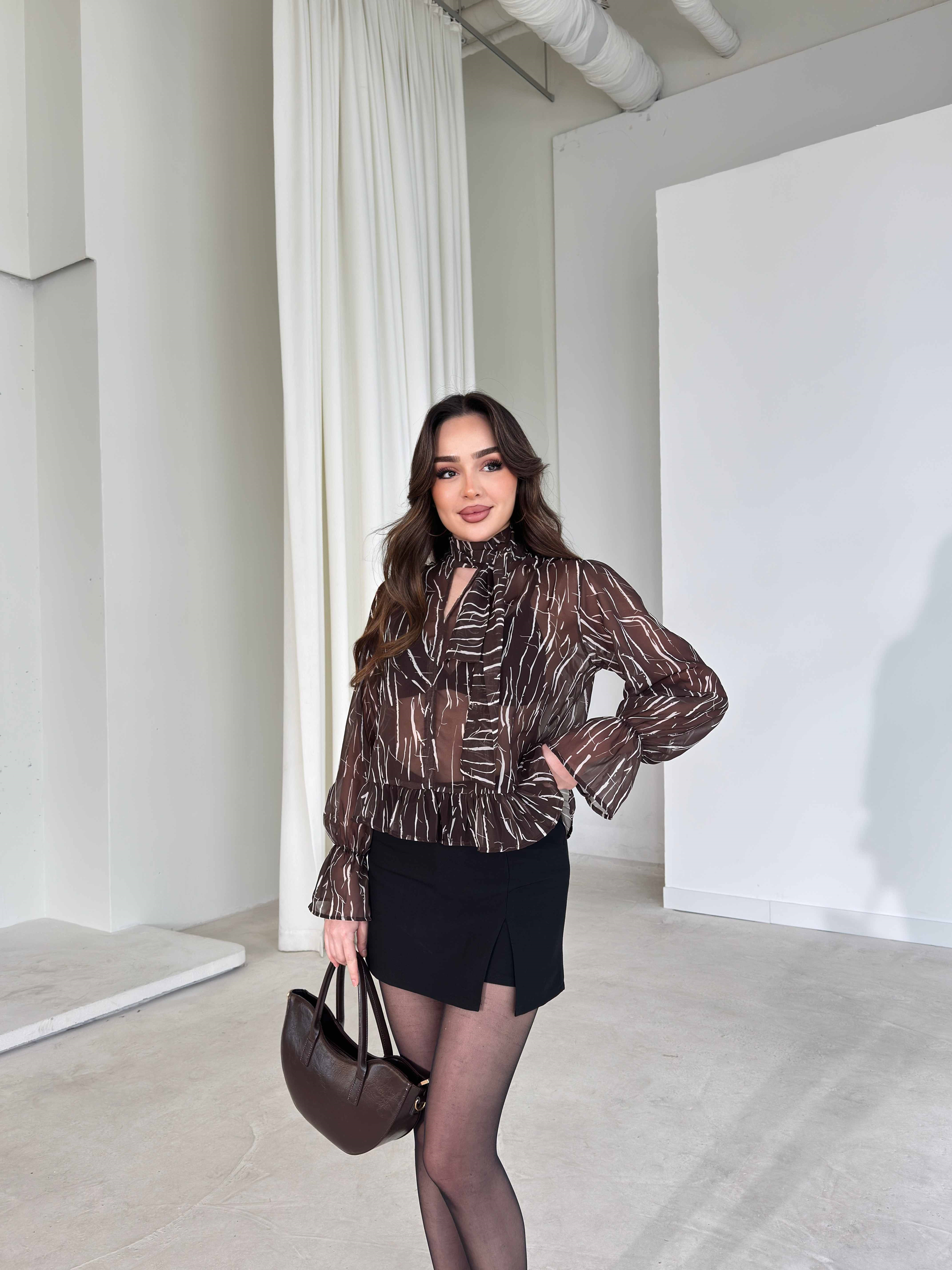 Kendinden Fularlı Transparan Kahverengi Adeline Kadın Bluz 26Y177 (26Y177)