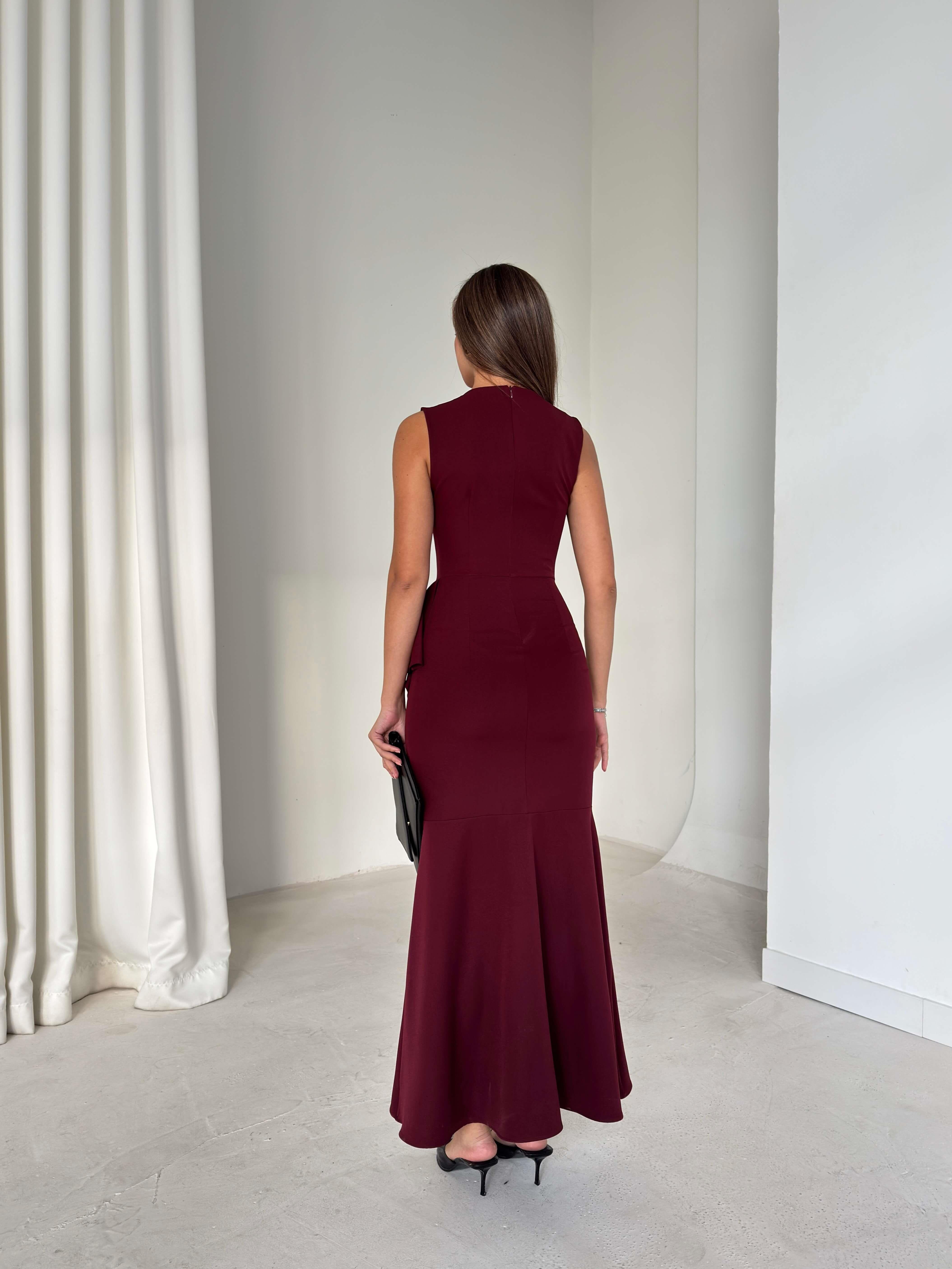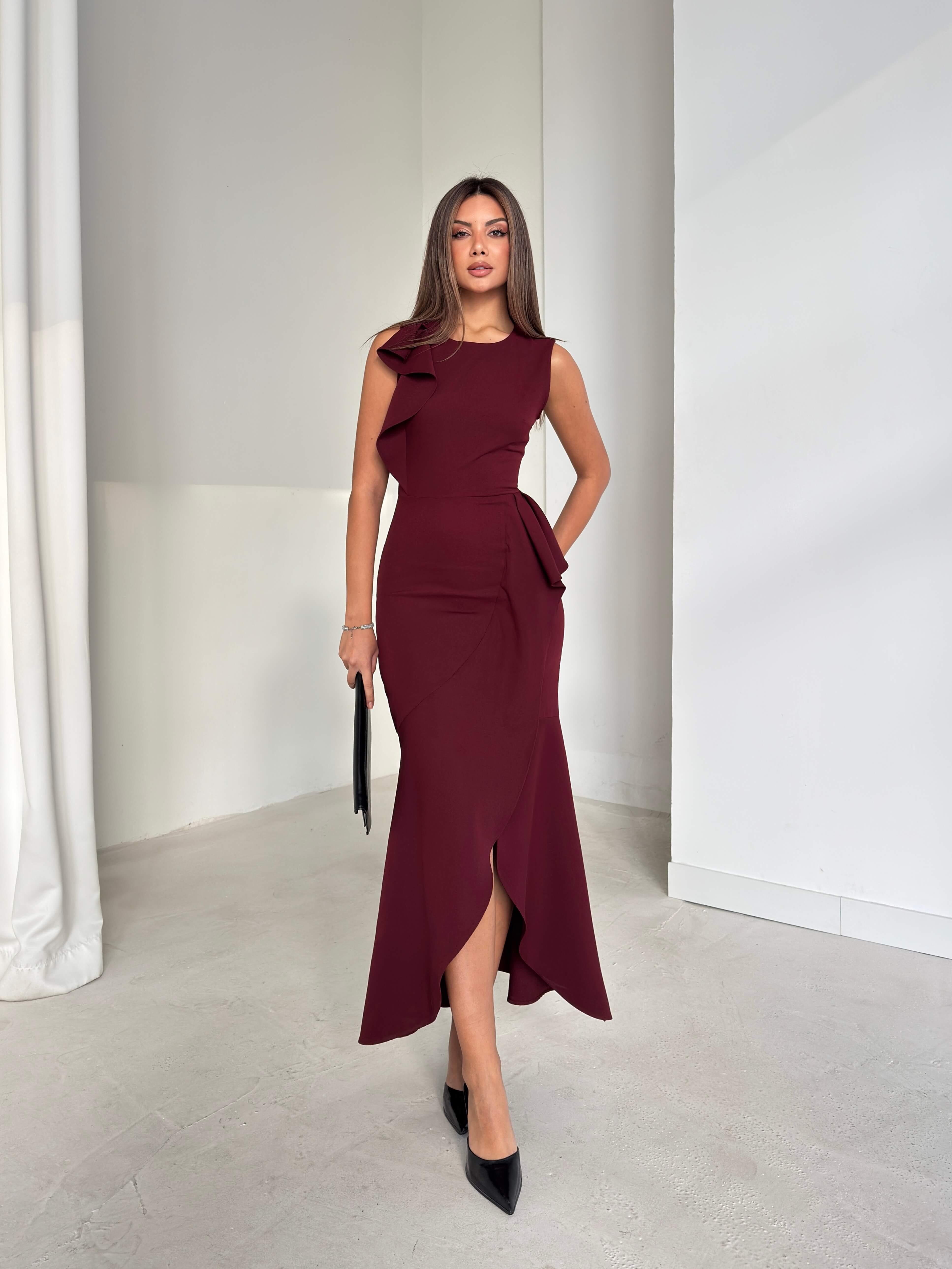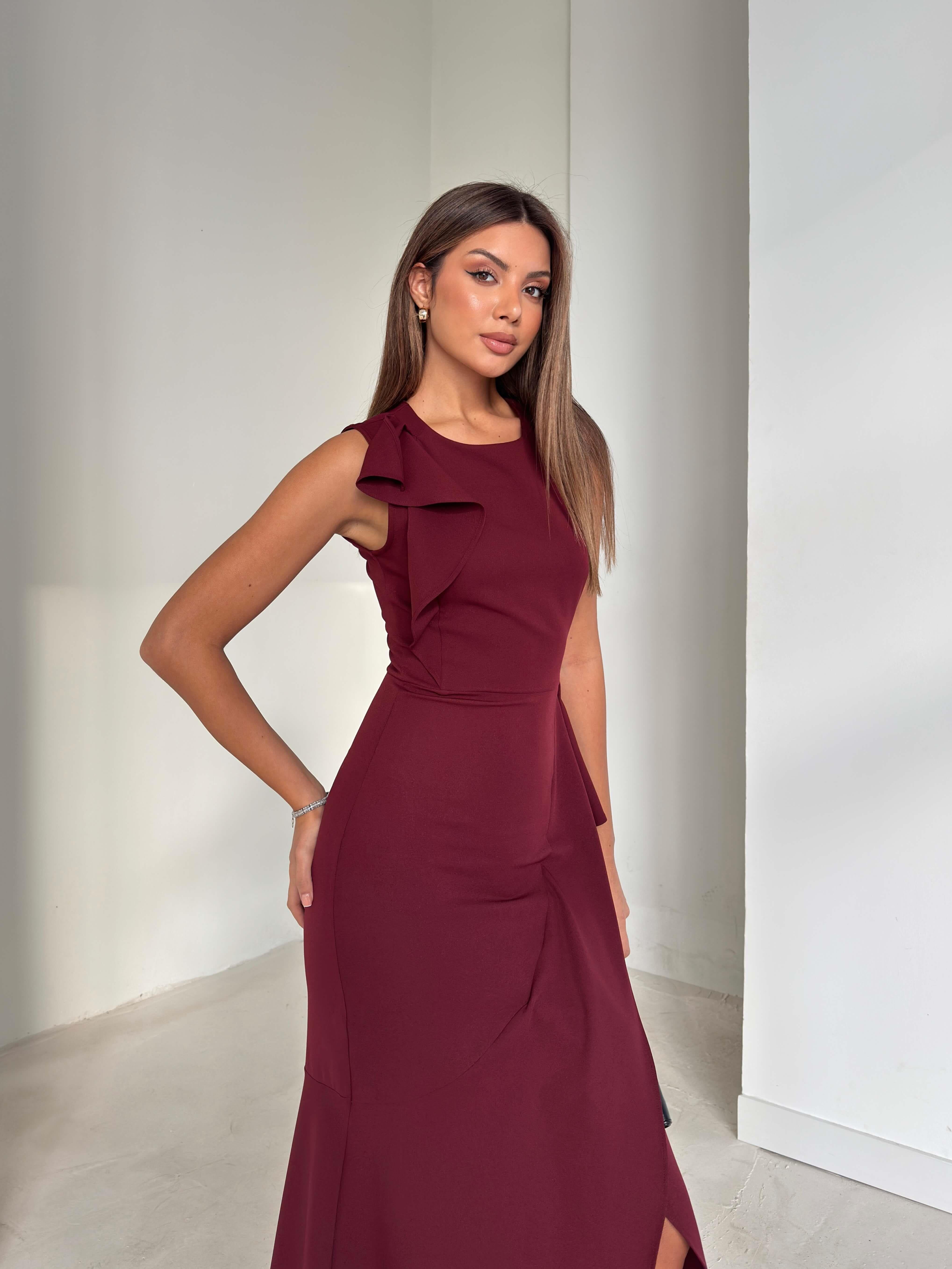 Kruvaze Kesim Kolsuz Pesvari Bordo Kadın Elbise 26K201 (26K201)