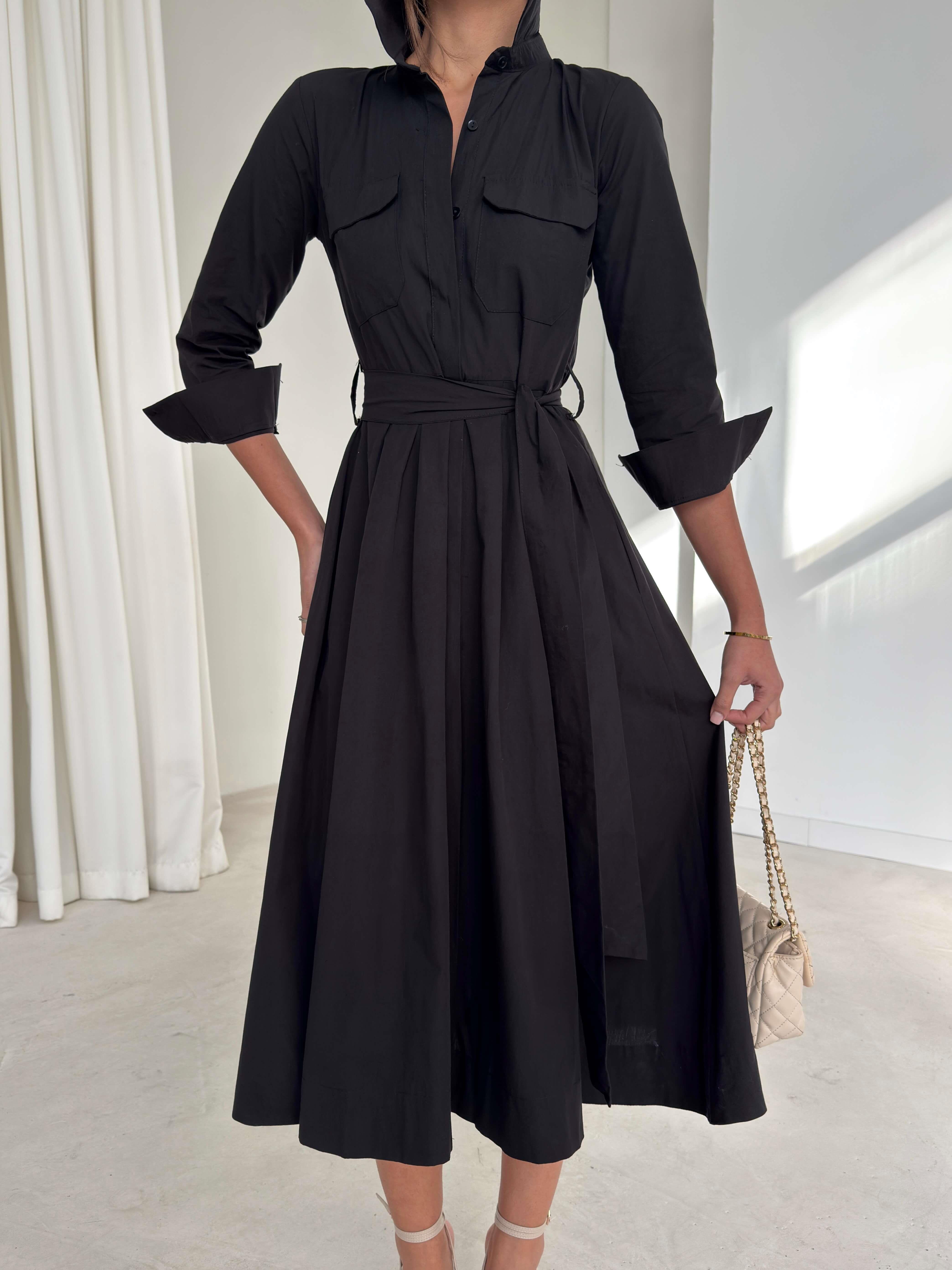 Kuşaklı Pileli Cepli Kemilda Siyah Kadın Elbise 26K293 (26K293)