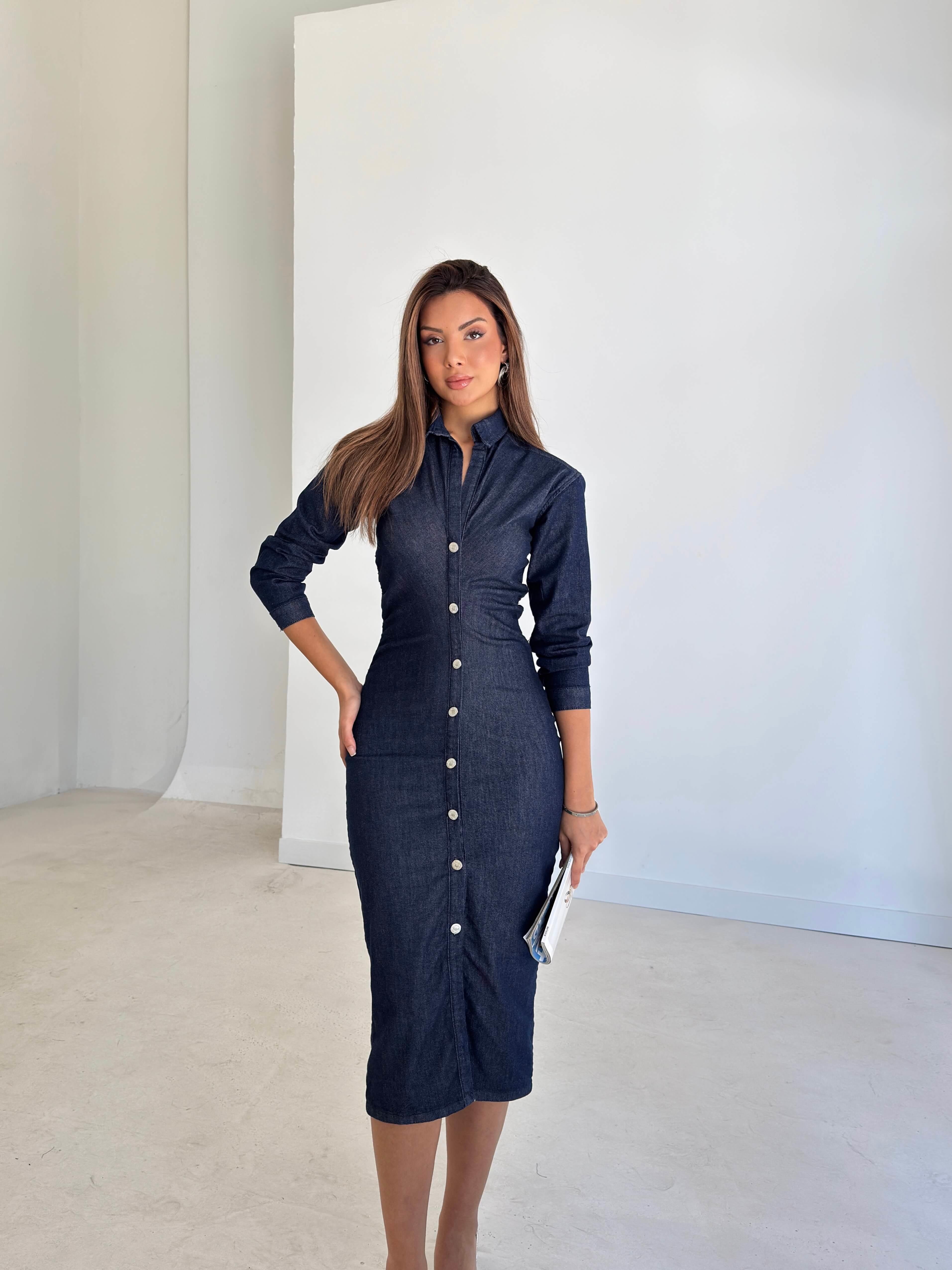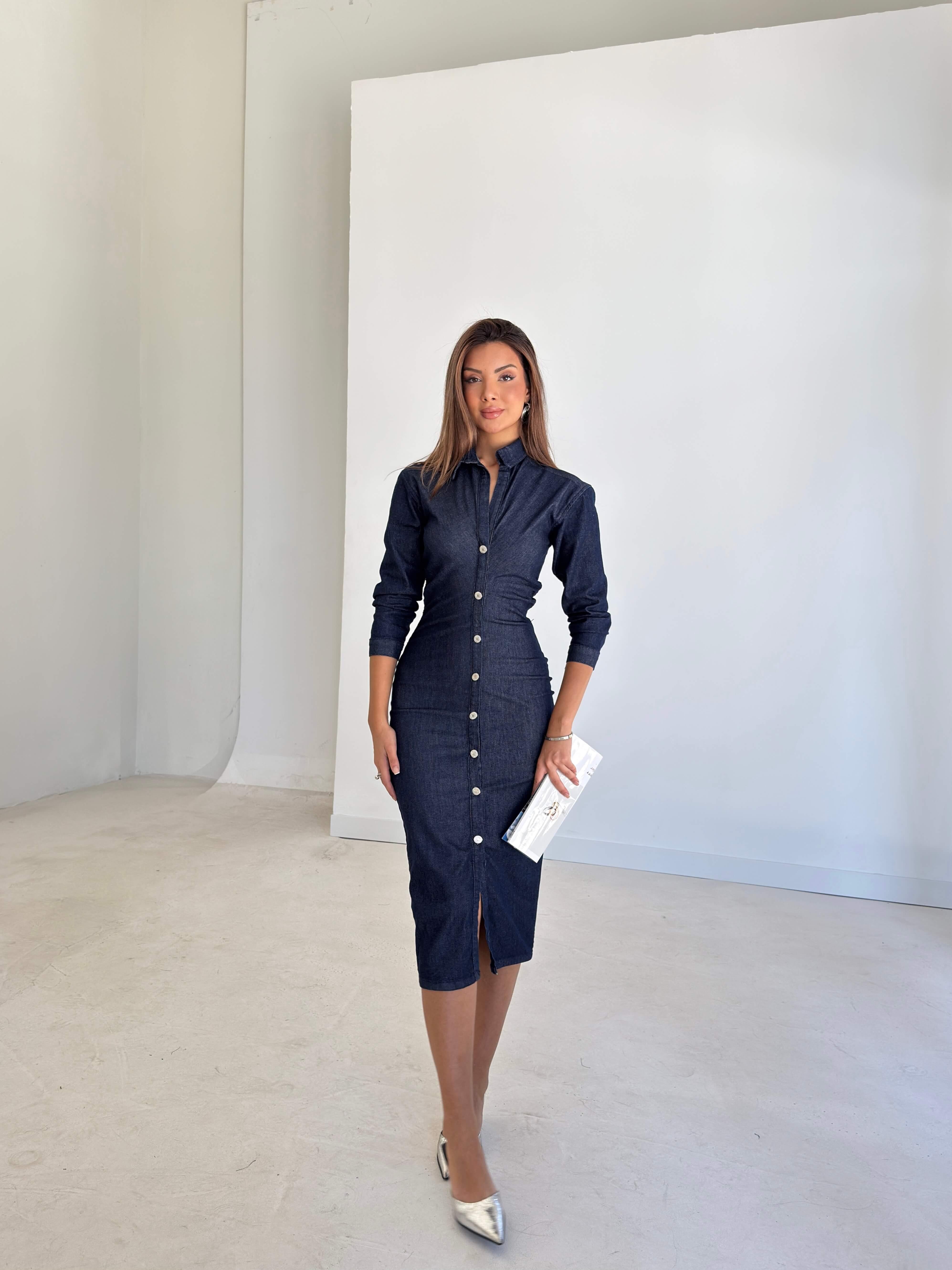 Önü Düğmeli Madil Lacivert Kadın Kot Elbise 26K110 (26K110)