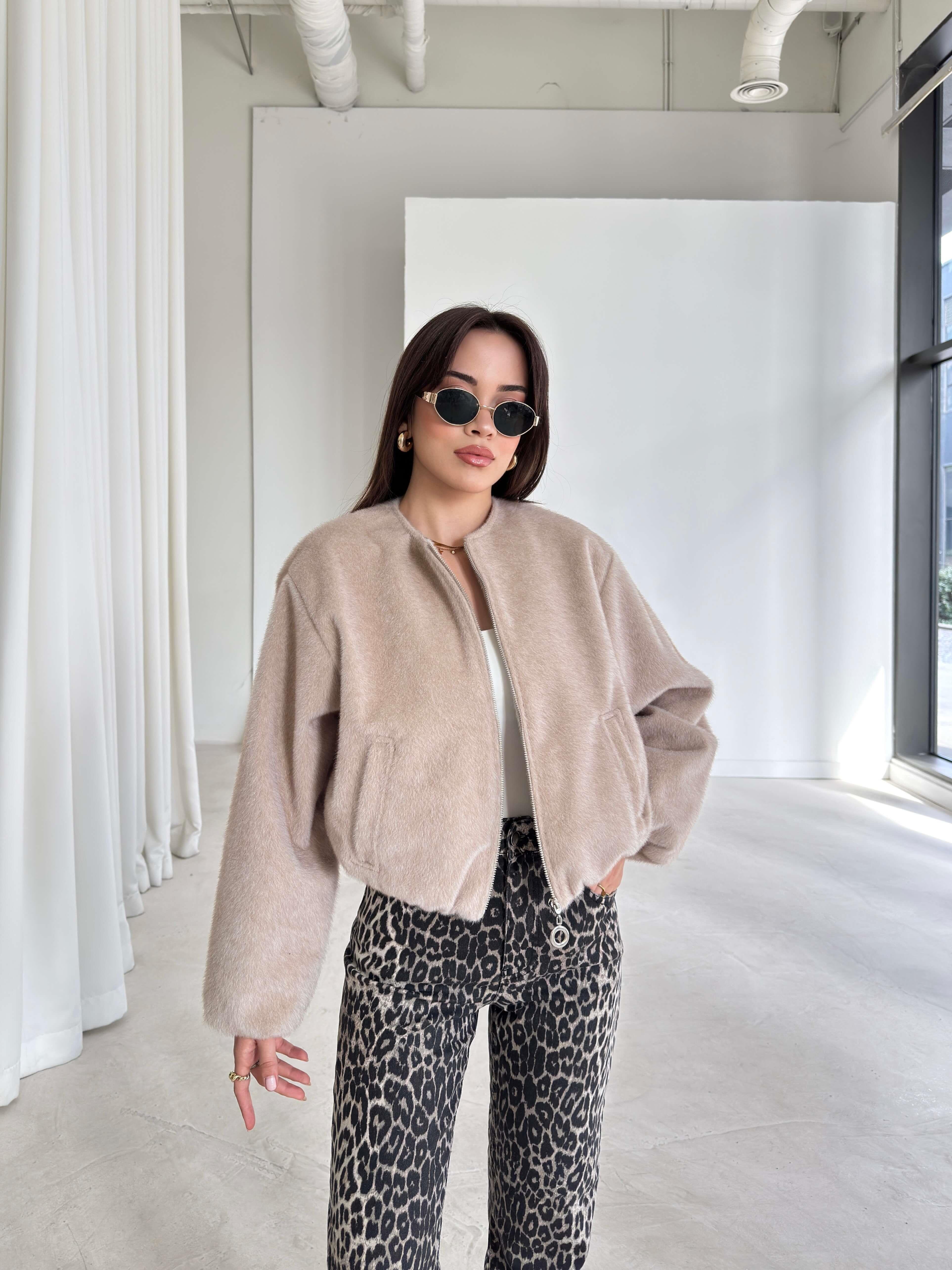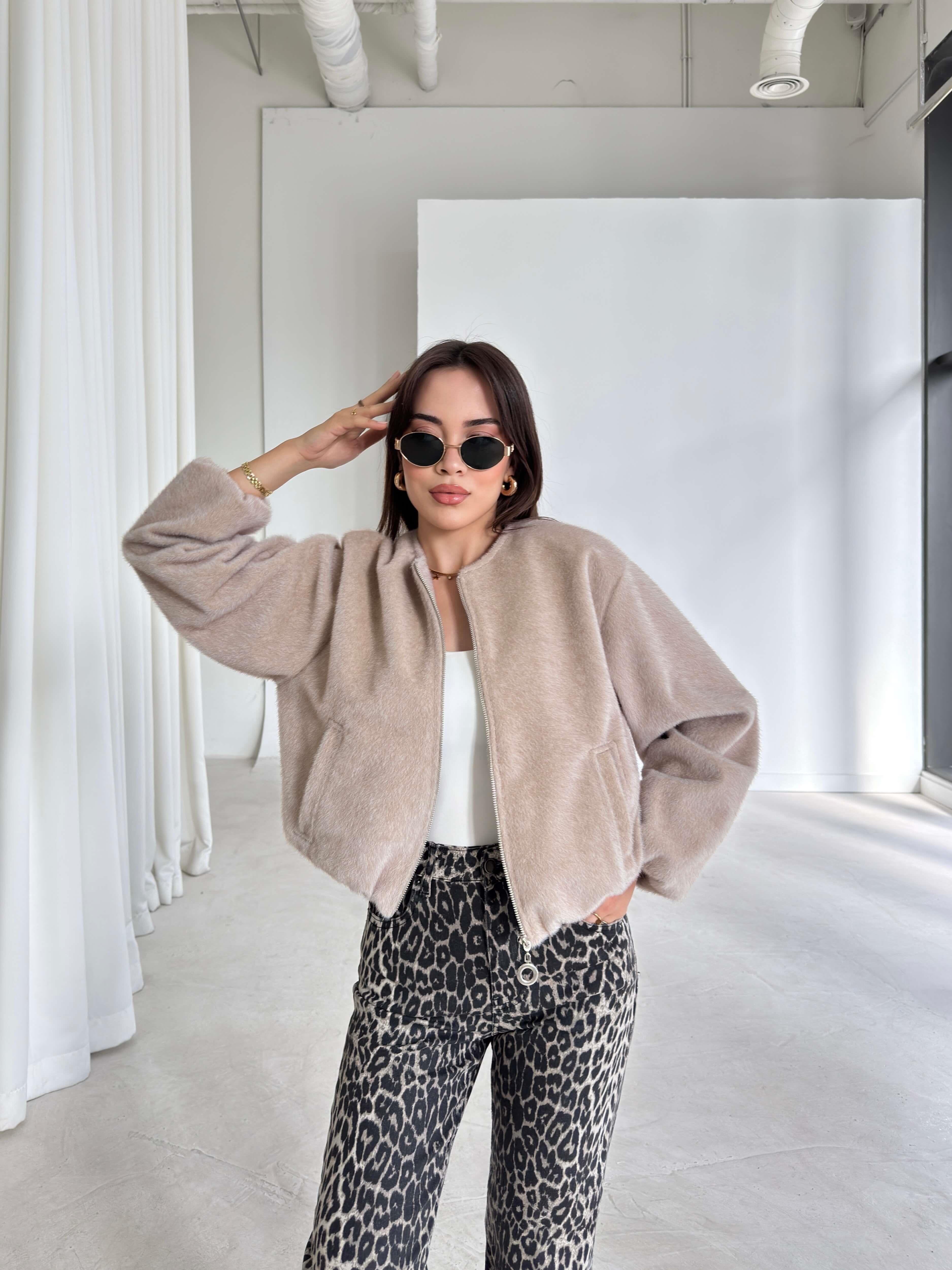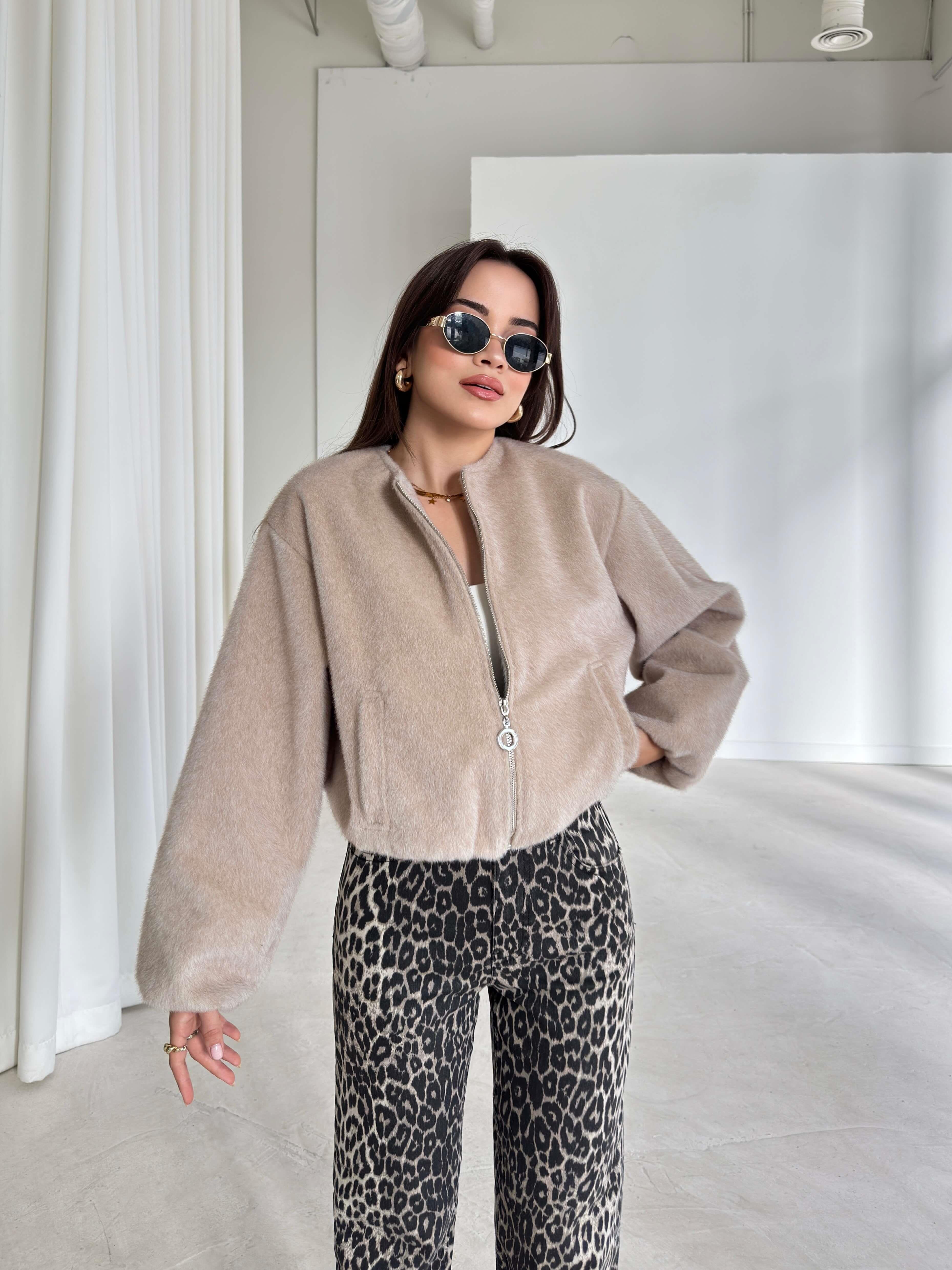 Önü Fermuarlı Gizli Cepli Bomber Darian Taş Kadın Crop Ceket 26K219 (26K219)