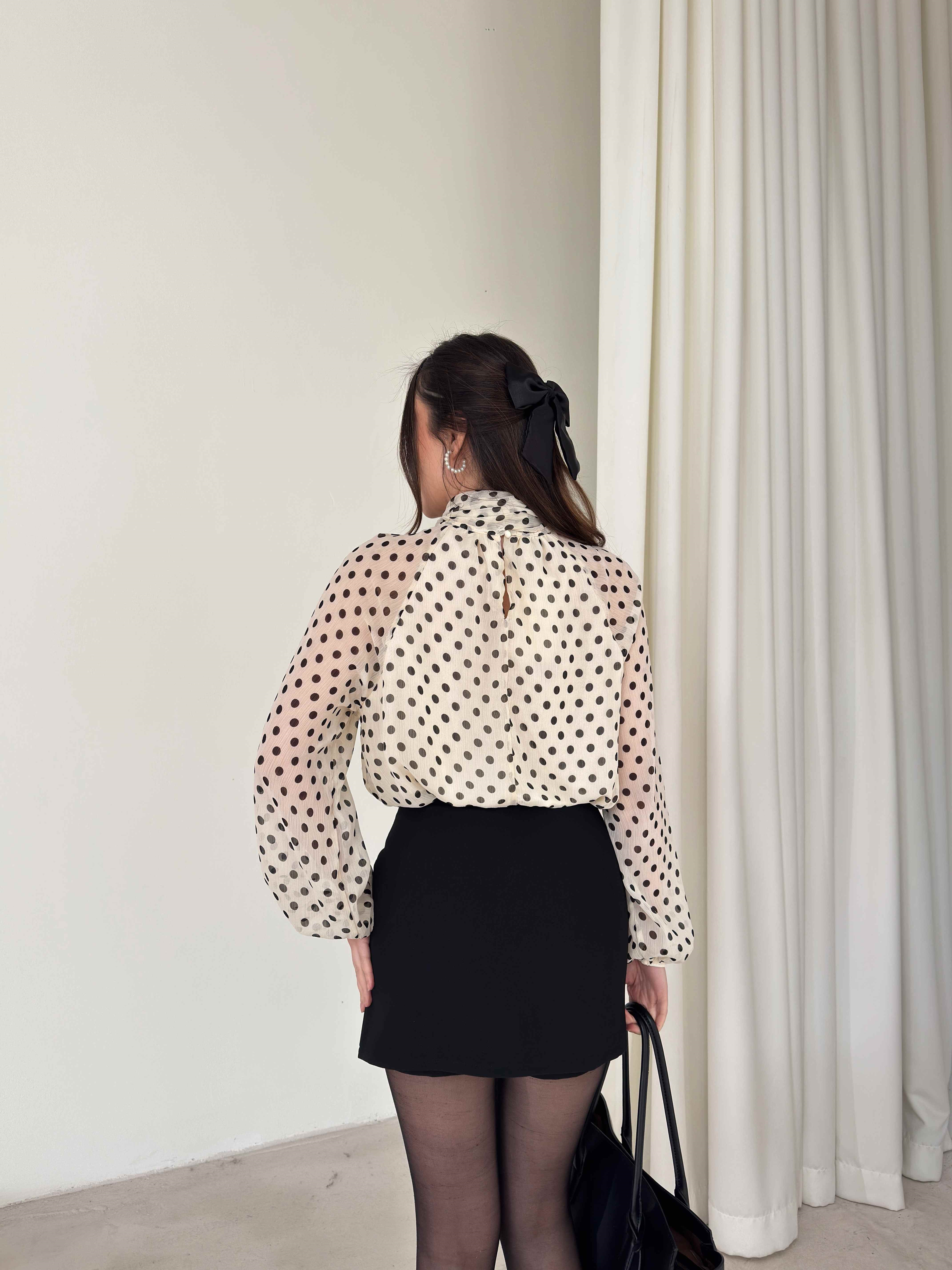 Puantiyeli Boynu Fularlı Şifon Evro Ekru Kadın Bluz 26Y054 (26Y054)