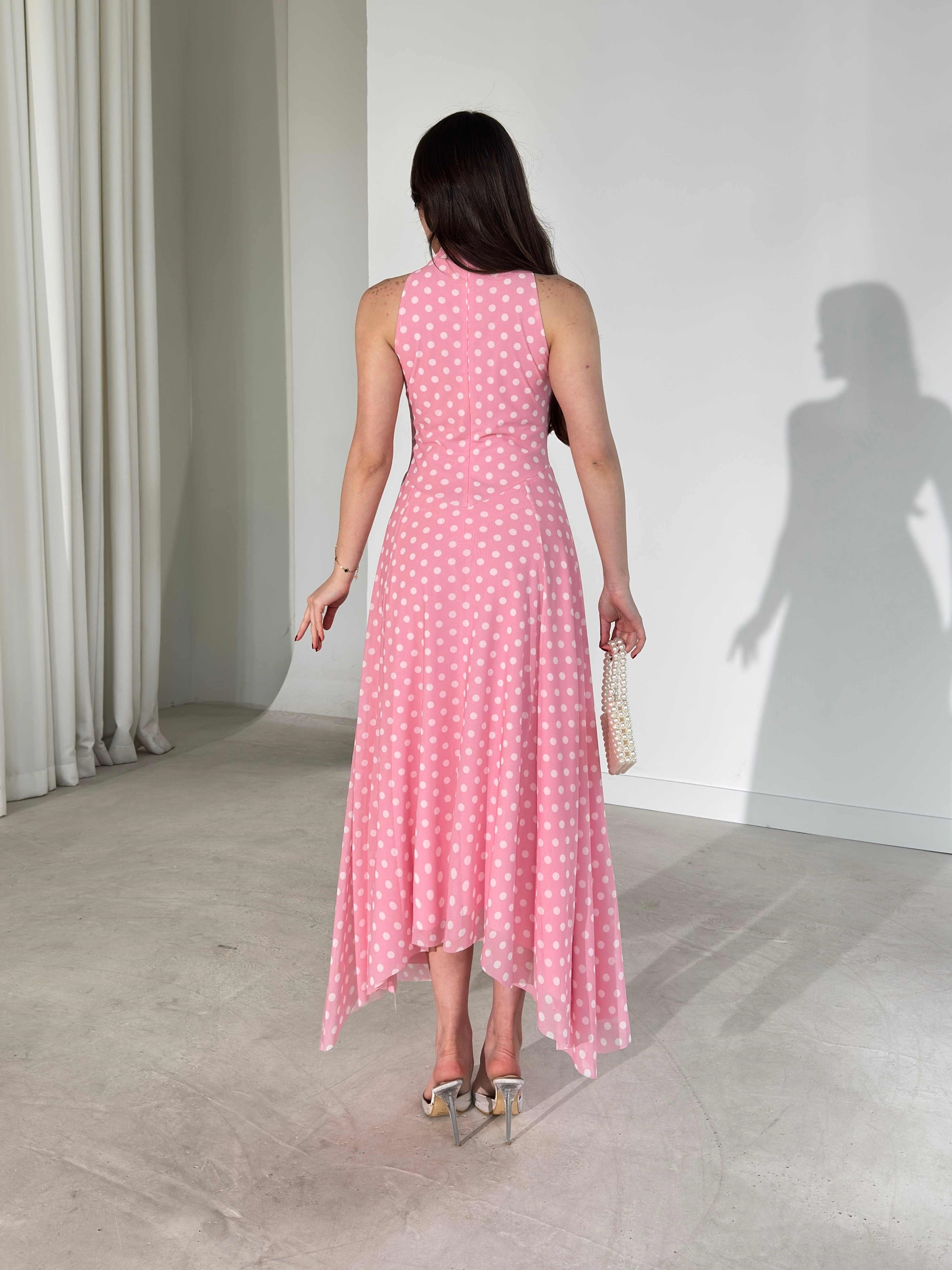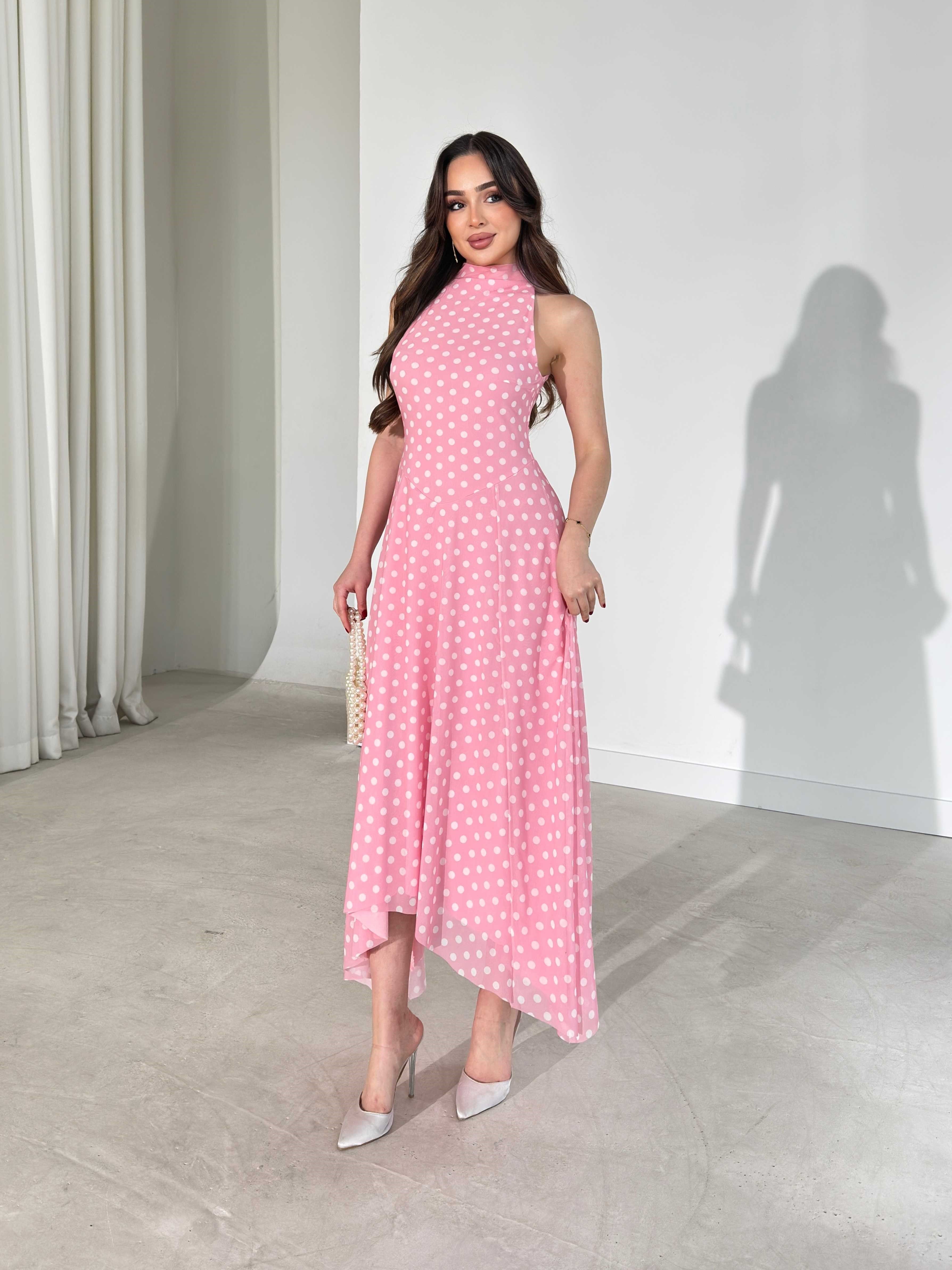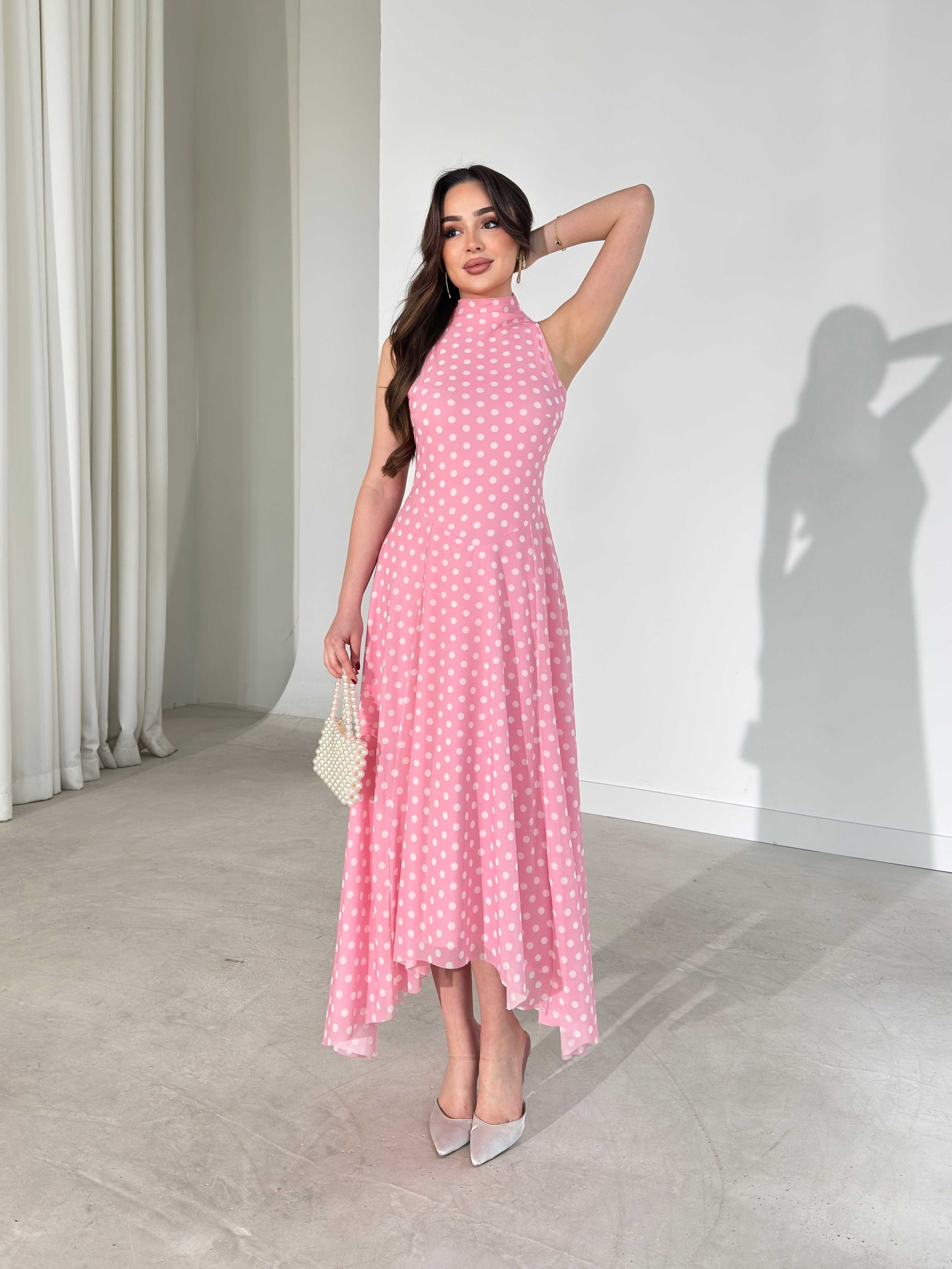 Puantiyeli Sıfır Kol Asimetrik Detaylı Pembe Fausta Kadın Elbise 26Y191 (26Y191)