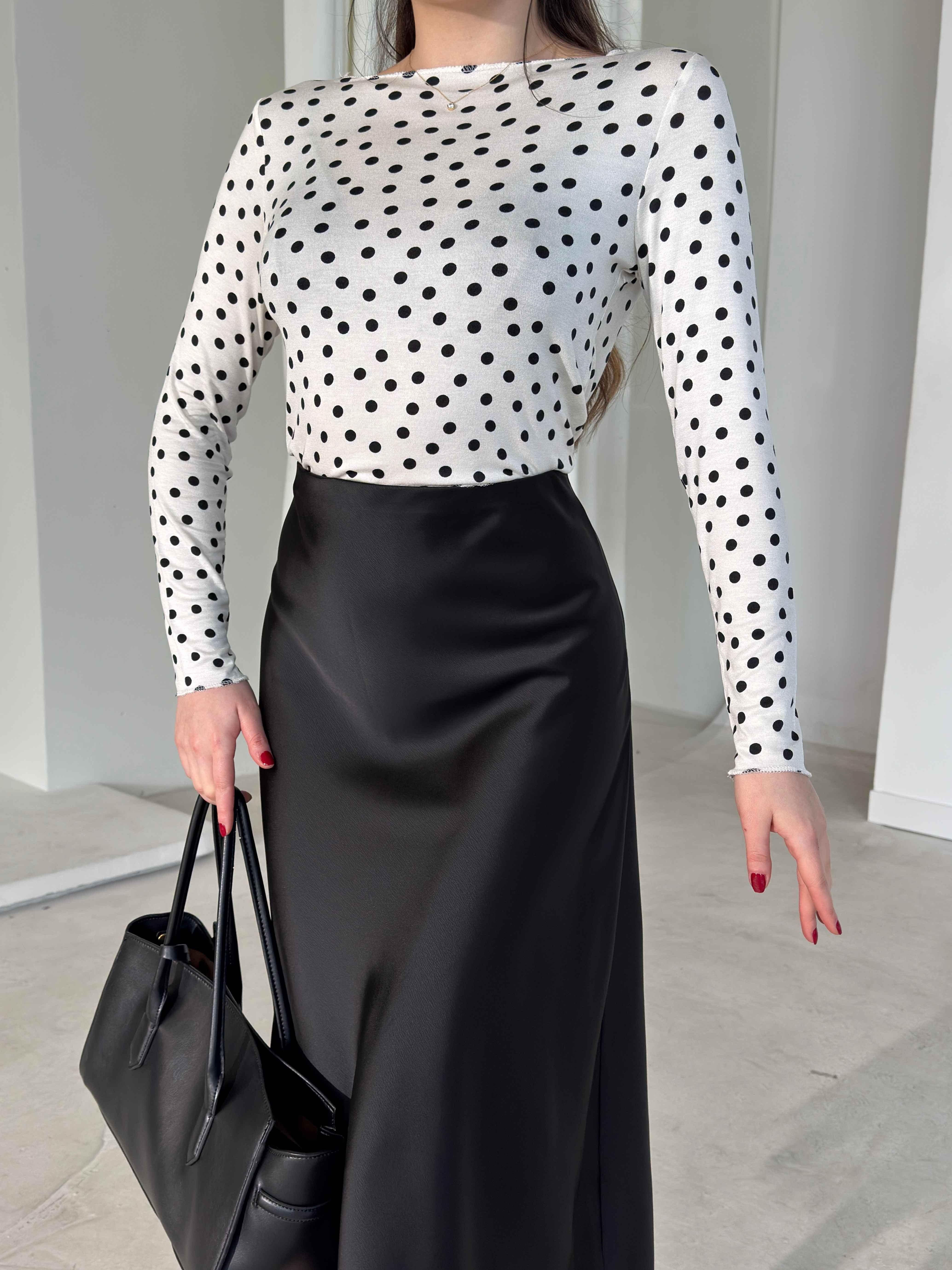 Puantiyeli Uzun Kollu Ekru Diamanta Kadın Bluz 26Y115 (26Y115)