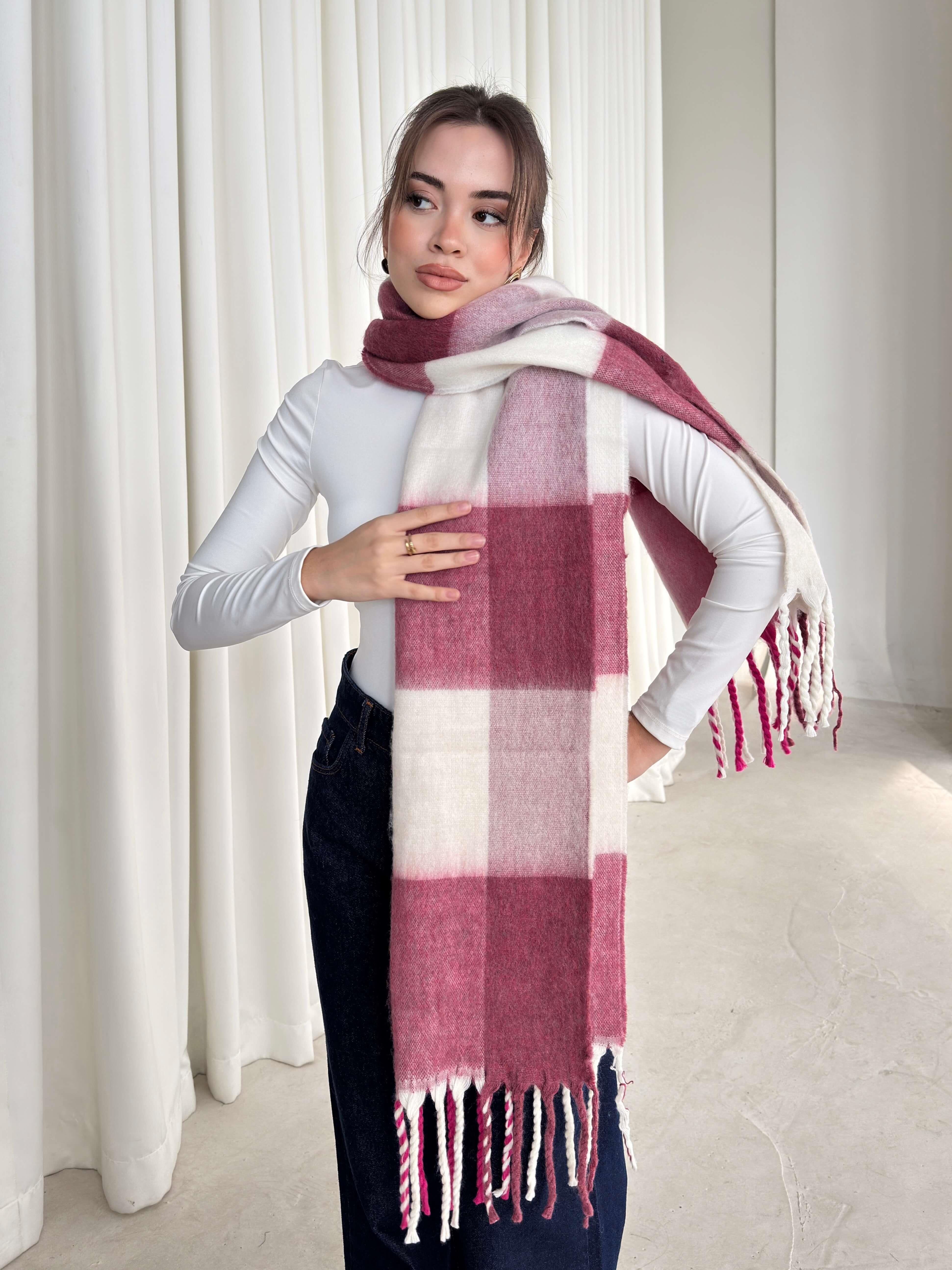 Püsküllü Desenli Bordo Kadın Şal 26K208 (26K208)