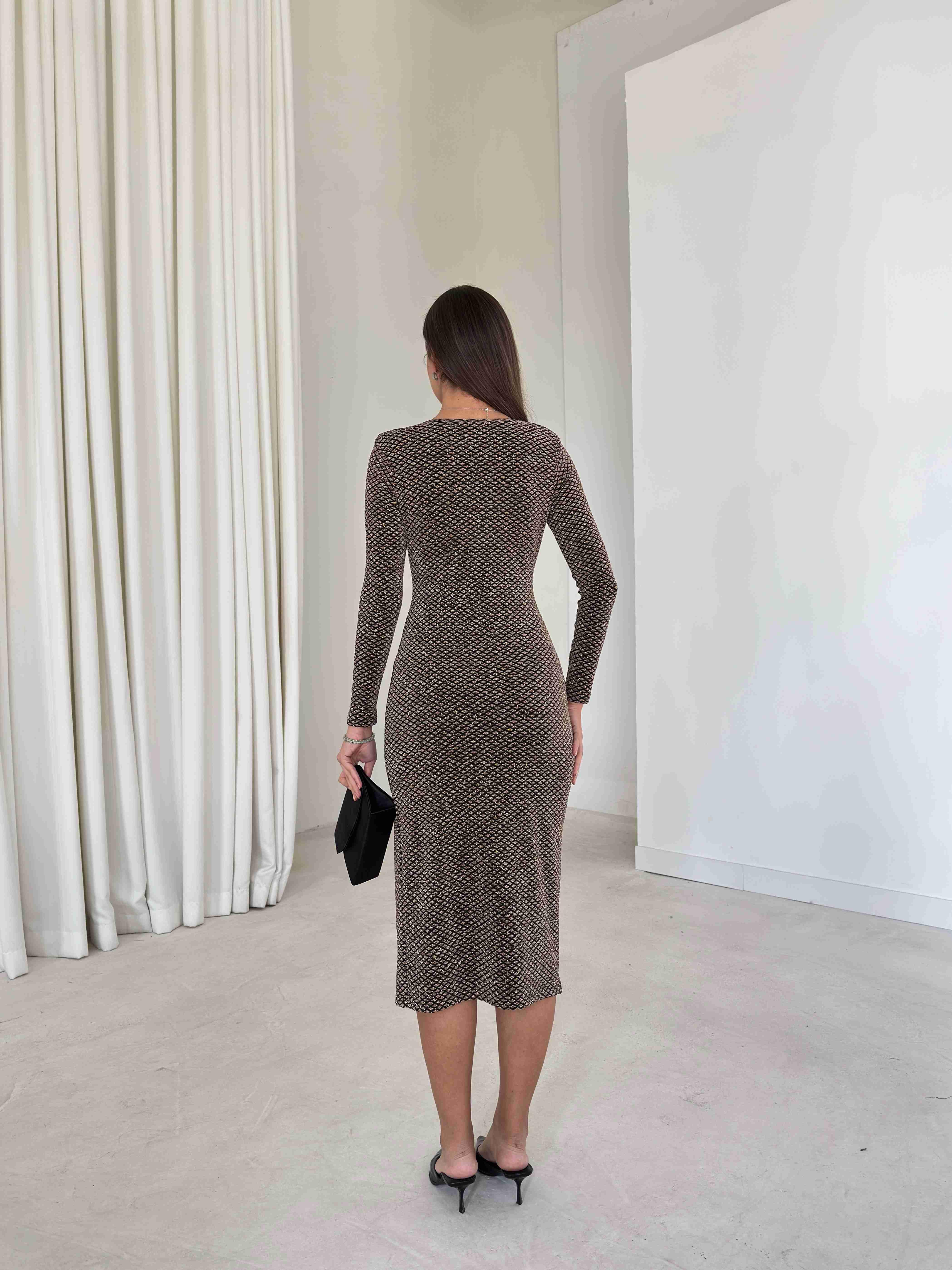 Taşlı Parlak Kruvaze Yaka Drapeli Önü Yırtmaçlı Nılda Gold Kadın Elbise 26K295 (26K295)