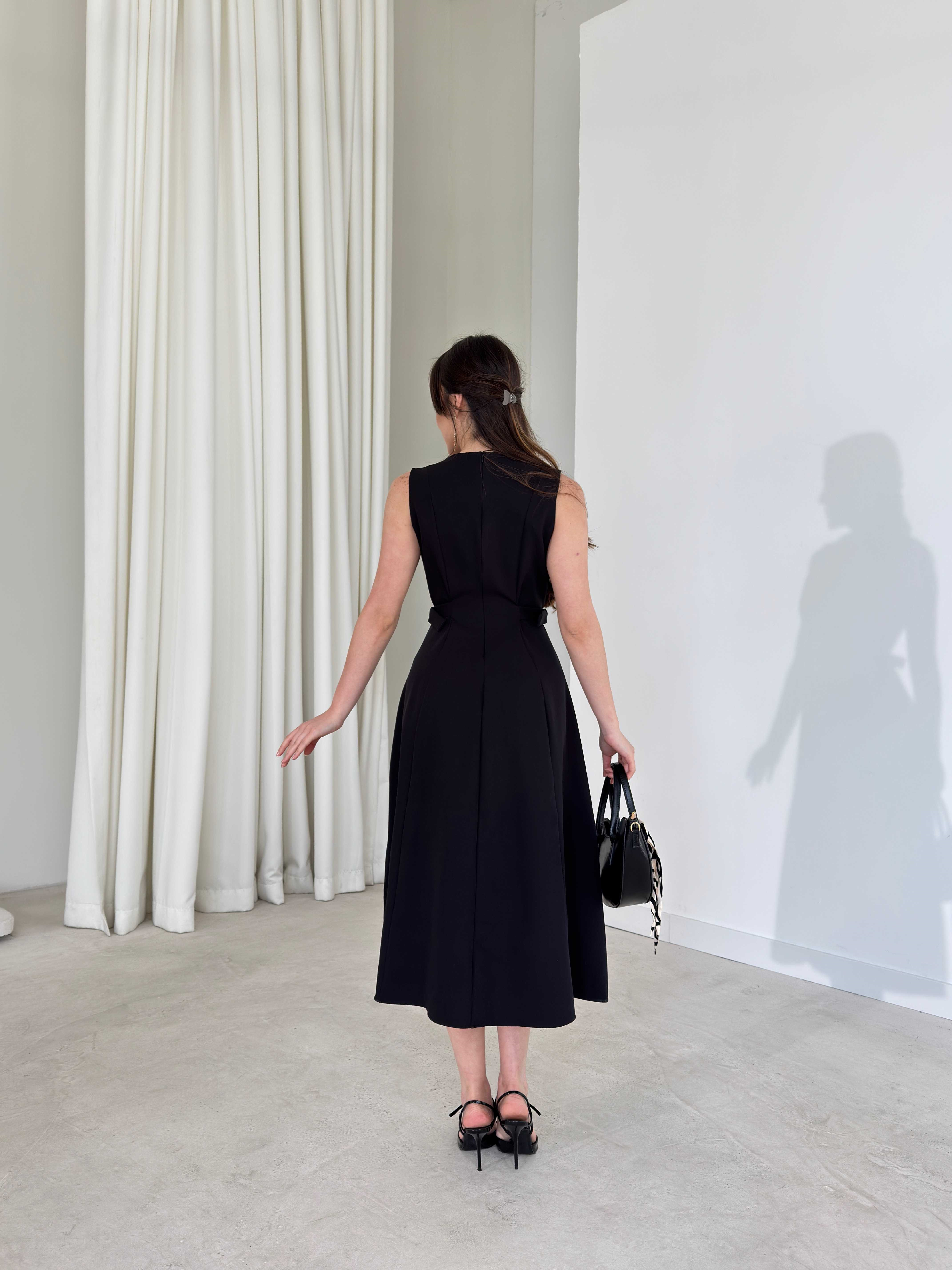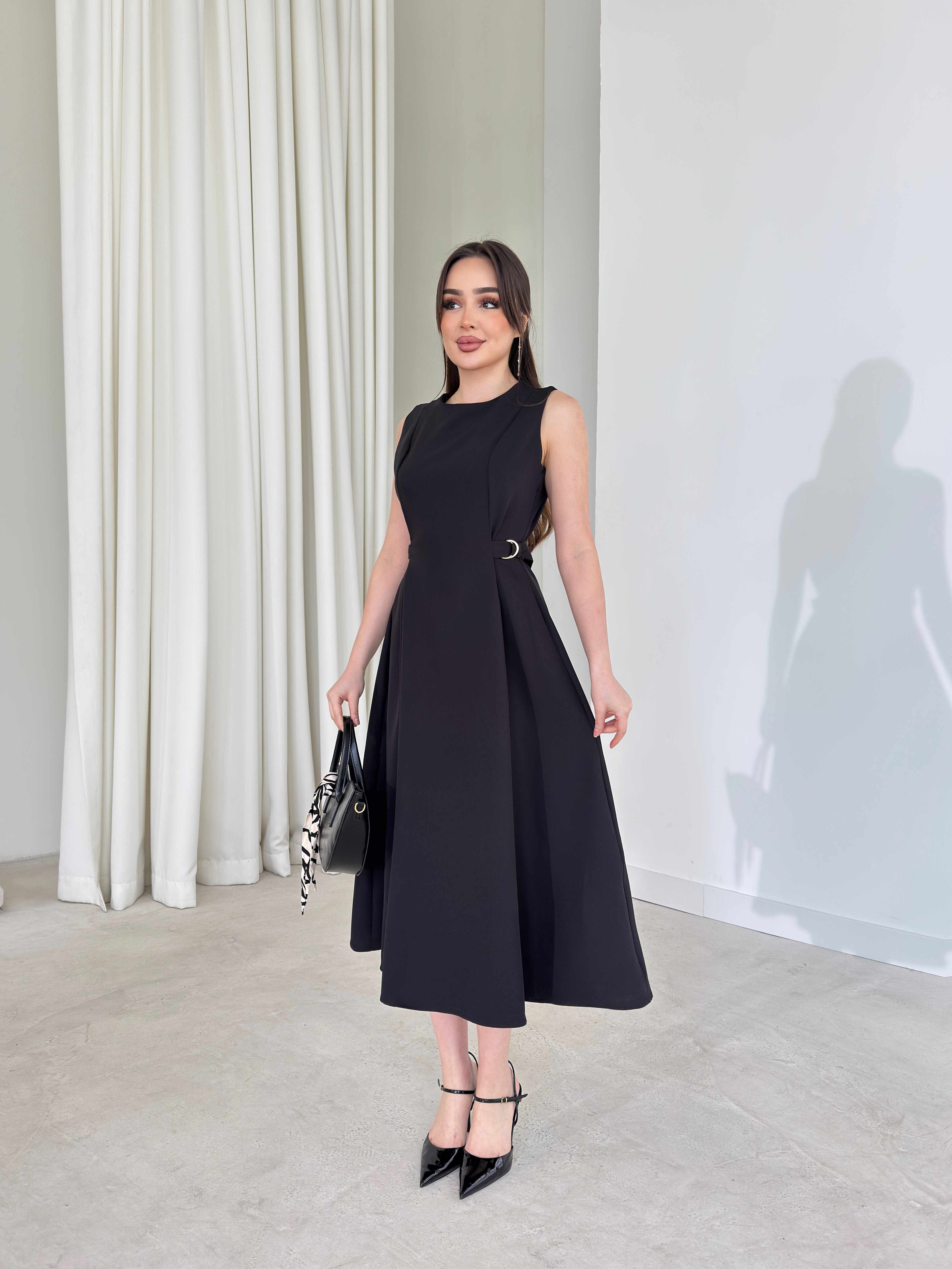 Yanı Ayarlanabilir Kemerli Sıfır Kol Midi Boy Siyah Vice Kadın Elbise 26Y176 (26Y176)