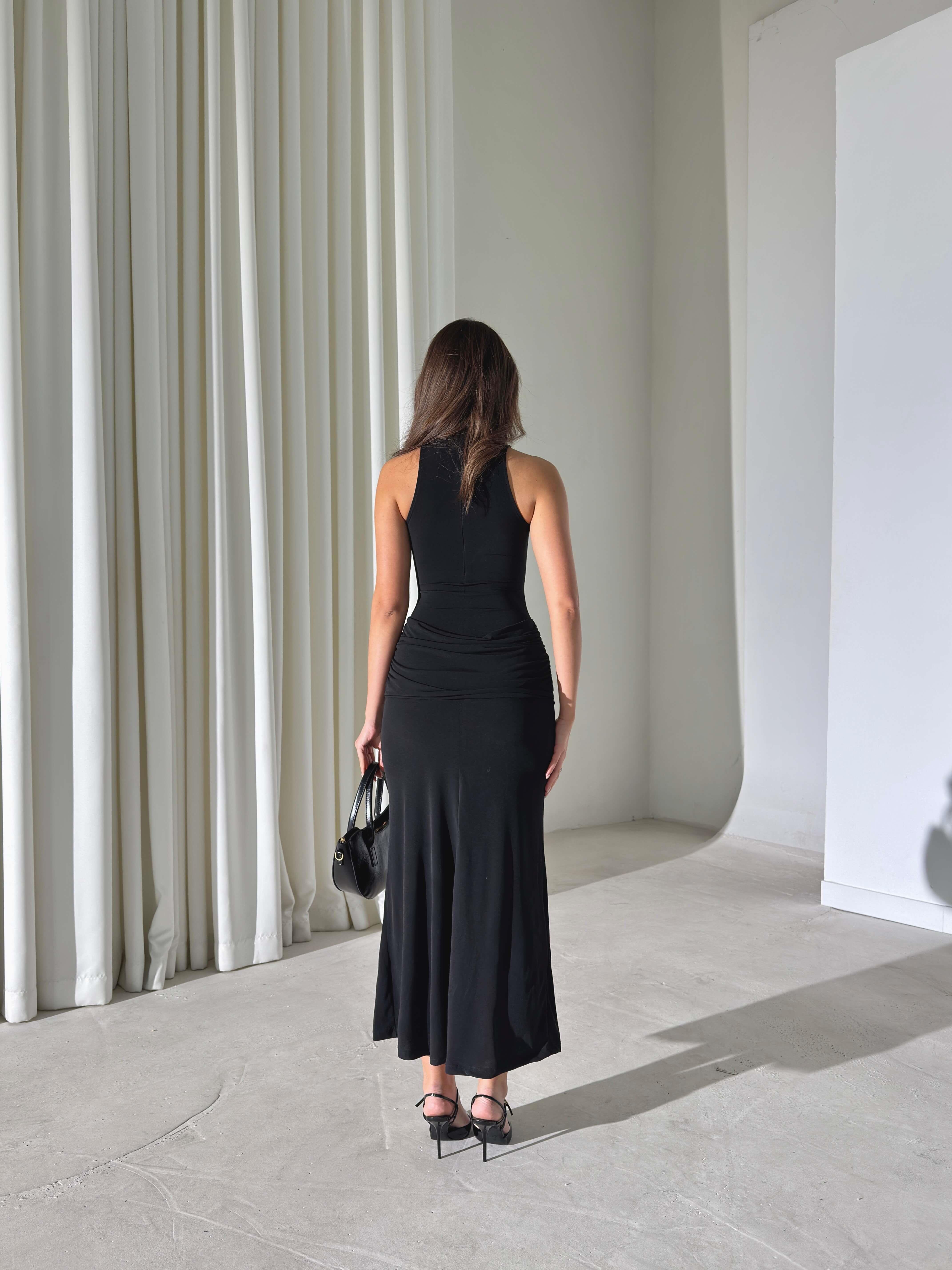 Yırtmaçlı Sıfır Kol Kuşak Detaylı Bolmi Siyah Kadın Elbise 26Y004 (26Y004)